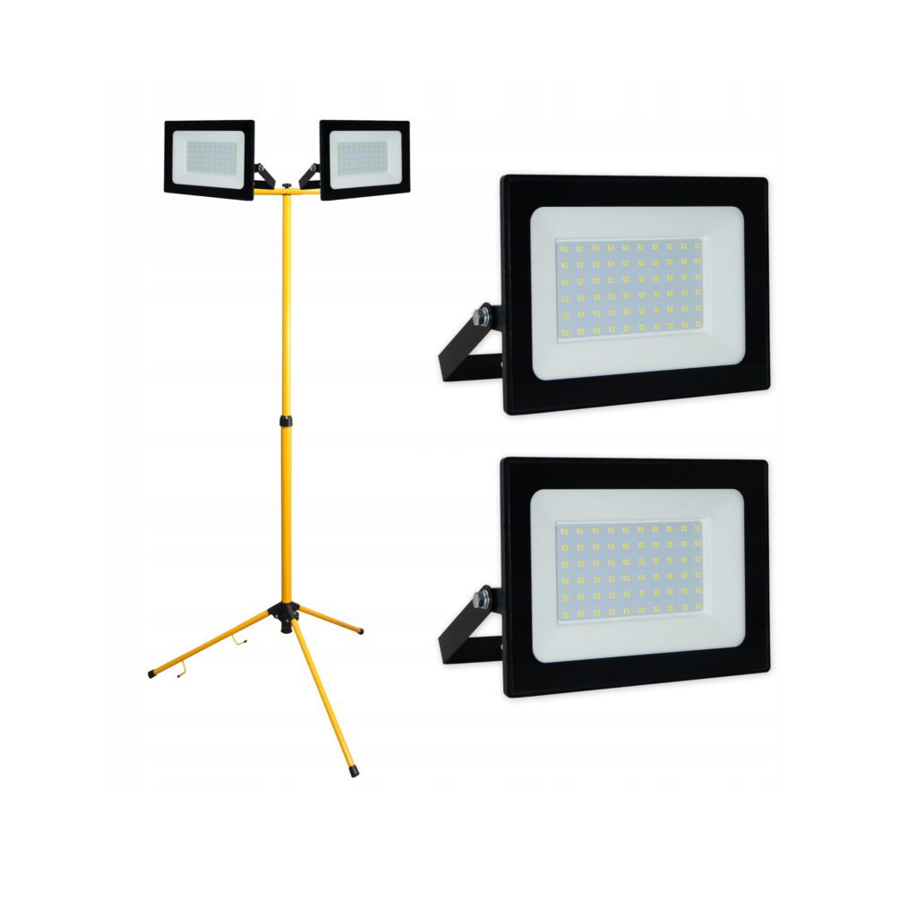 Zestaw naświetlaczy 2x 100W ze statywem to idealna pomoc do prac budowlanych, wykończeniowych, warsztatowych itp. Aluminiowa konstrukcja statywu gwarantuje znakomitą stabilność, a jasność naświetlaczy zapewni wysoki komfort pracy.